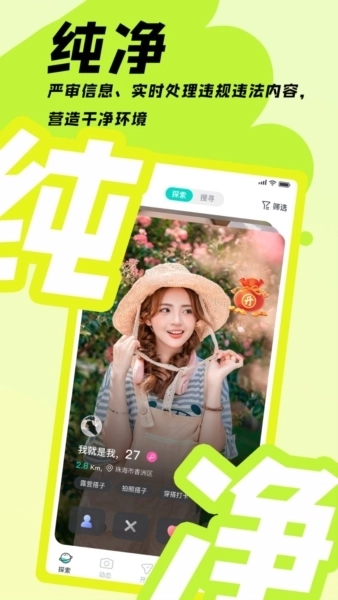 我们用心打造了一个纯粹、健康的社交天地,借助智能匹配技术,全面结合你的兴趣取向、所在位置与活动喜好,一键帮你找到专属的伙伴。开启聊天、互动交流,体验无杂质的社交,一切都由你自由决定!此外,通过真实信息认证,让你每一次的相逢都真实可信。