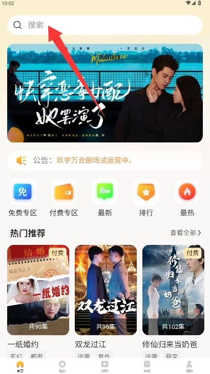 3、在首页的搜索栏里输入目标剧集名称的关键词,系统就会自动匹配对应的影视资源内容。