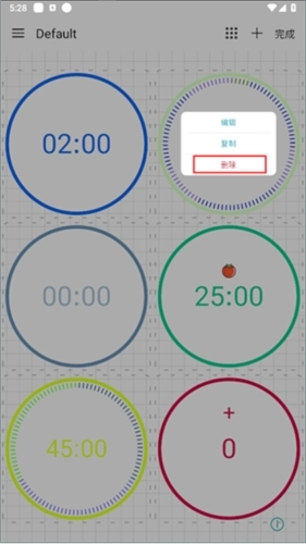 方法一:进入编辑模式后,点击要删除的计时器,在弹出的窗口里选择删除选项就可以了。