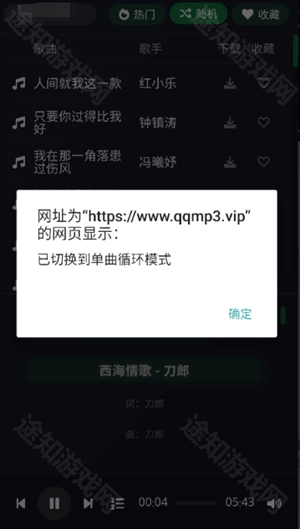 -改变播放模式,单循环/随机播放/循环播放等可随意改变。