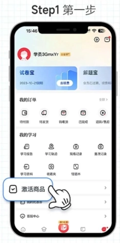 1、打开好未来图书App,完成注册或登录操作,接着点击“激活商品”进入会员卡激活页面。