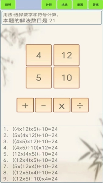 多种解法:软件能够算出所有可能的解题方法,助力用户全方位掌握24点问题的解题思路。