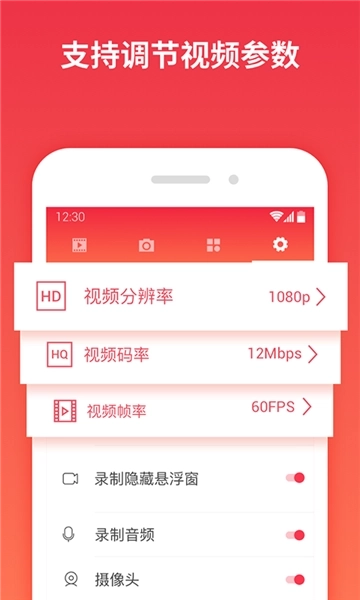 【专业录屏】超清画质稳定流畅录制,可自由选择多种视频分辨率、码率与帧率