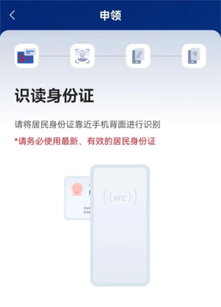 3、会提示识别证件类型,只需把证件放在手机背面的NFC感应区域,系统就能自动读取信息。不过这一步需要手机具备NFC功能,要是你的手机没有NFC功能的话。
