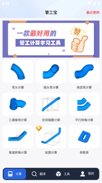 管工宝软件,作为管道安装人员不可或缺的伙伴,以其强大的功能和人性化的操作,让工作变得更加简单。无论您是新手还是资深专家,都能从中受益。一键启动计算,选择所需类型,快速进入工作状态,输入数据,瞬间得出精准结果。从此,测量、计算不再是难题,高效工作,尽在掌握。立即管工宝软件,让您的管道安装事业如虎添翼,成就专业辉煌!