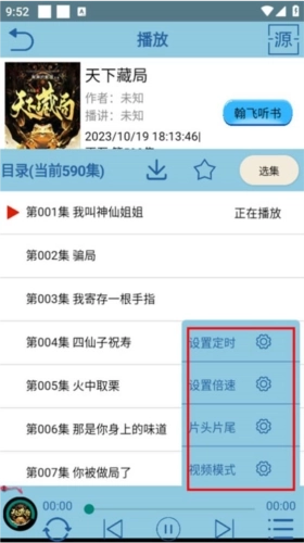 2、听书时,你也能切换到视频模式,以此获得更强的沉浸感,像听书速度、跳过片头片尾这类功能都支持自定义设置。