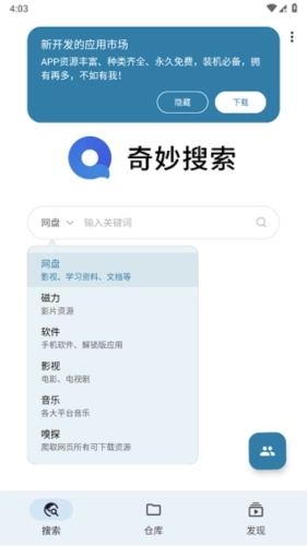 奇妙搜索2025版是一款功能十分强大的手机磁力资源搜索工具,只需输入关键词,就能迅速定位到所需资源,无需担心资源被屏蔽的问题。软件整合了多个搜索引擎,为用户提供专业的搜索服务,无论是电影、电视剧,还是音乐、福利等各类资源,都能满足你的个性化需求。此外,它还具备极速功能,让你可以快速获取心仪的资源,感兴趣的话不妨来体验一下!