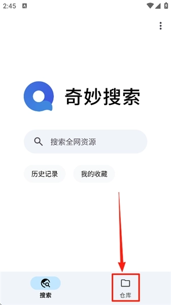 1、打开软件进入主界面后找到并点击“仓库”页面
