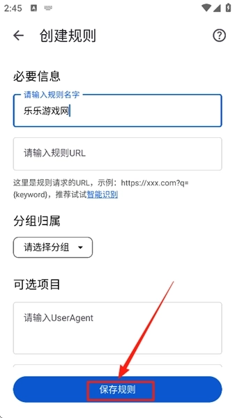 3、点击“创建规则”选项,按照页面提示依次填写必要信息,例如规则名称、搜索源对应的链接等内容。
