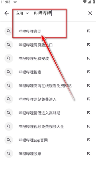 5.在这里我以哔哩哔哩为例,点击进入对应的页面。