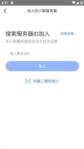 2、想要加入任小聊天,需要搜索点击搜索服务器id加入其中。