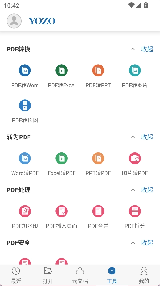 4、PDF阅读与处理:可直接打开PDF文件进行阅读,同时支持将其他文档转为PDF,还提供合并、拆分、加水印等进阶处理选项。