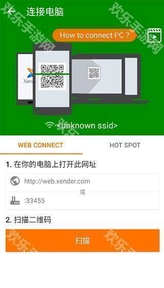 3、在电脑上打开下图所示的网址,或者使用电脑前置摄像头扫描二维码,就能成功连接。