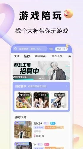 2、汇聚各路游戏高手的乐园:这里云集了各类游戏达人,不管你是想找技术精湛的大神助力提升段位,还是想寻觅兴趣相投的伙伴一同开黑,都能迅速找到合心意的对象。