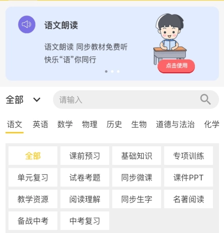 4、在线点读:英语点读、语文点读,覆盖小学.初中.高中的教材。每日坚持听,真的有奇迹