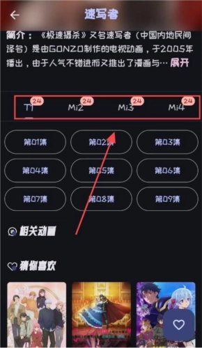 2、进入动漫介绍页面后,向下滑动页面,就能看到不同的播放线路和各集内容,挑选自己喜欢的线路和集数观看就可以了。