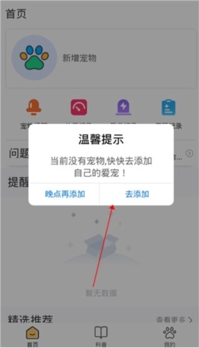 2、然后点击添加宠物