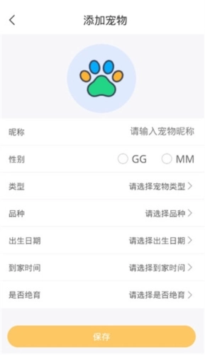 3、填写宠物的相关信息