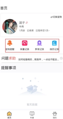 在宠物提醒记录功能里,你能够设置宠物的各类提醒事项,像体重记录、异常记录之类,这样能助力你更妥善地照料宠物的健康状况。