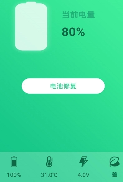 3、点击电池修复,可以实时的修复电池,让你更好的使用