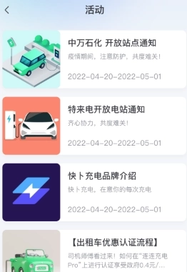 了解电动汽车行业动态,各类充电活动预先分享体验。