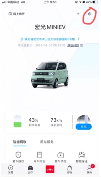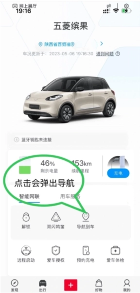1、进行车主认证后在出行界面中点击导航到车,就能看到车辆的定位