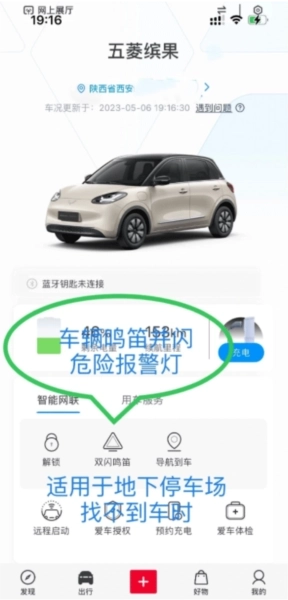 3、若在停车场找不到车时,还可以点击双闪鸣笛