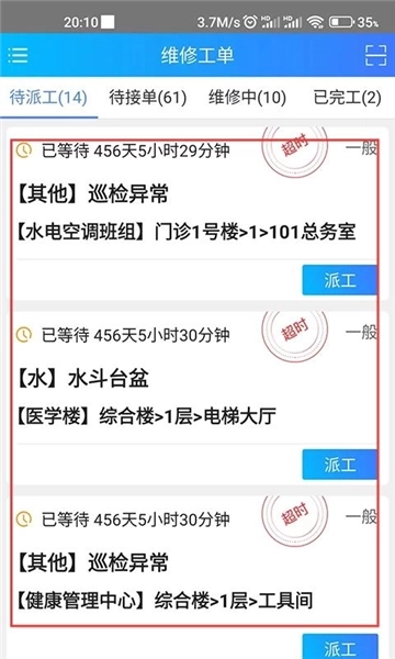 4、应用内设有各类维修工单,用户能够迅速为客户处理设备故障维修事宜。