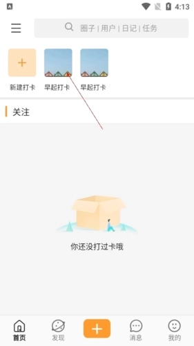 2.点击上方的新建打卡功能。