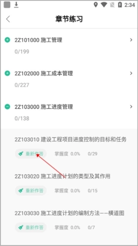 2、选择练习的栏目,然后点击“重新作答”即可。