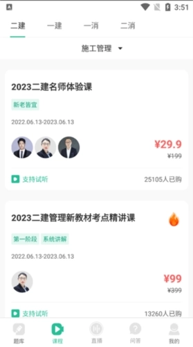 2、登陆后进入首页,为用户提供了海量的直播课,用户可以自由选择学习。
