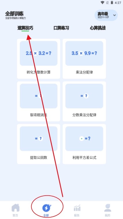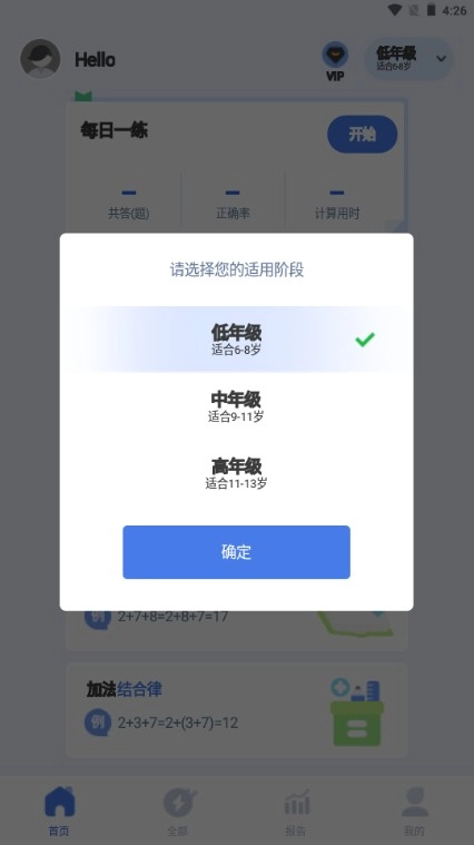 1、进入速算训练软件,选择用户的年龄段。