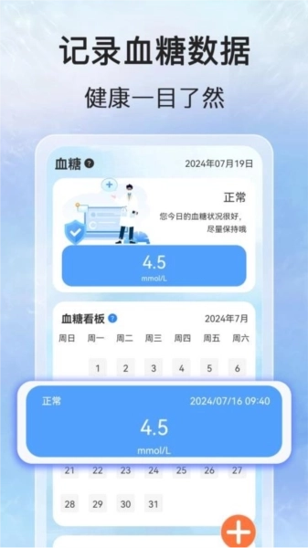 万能血压血糖测手机版配备了便捷的数据录入功能,不管身处何时何地,只要简单操作一下,就能迅速记录血压与血糖信息,让个人健康管理变得轻松易行。