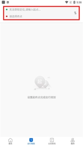 1、在一路同行中的出行规划页面中,输入你的位置和将要达到的终点;