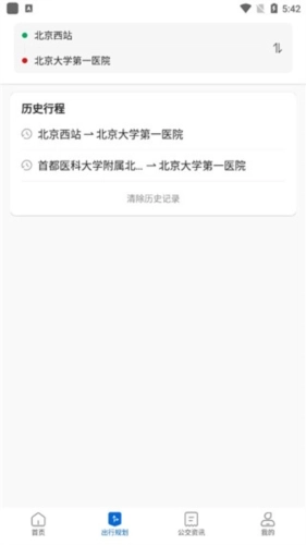 4、最后返回到出行规划页面,即可为你显示你的历史行程,你将可以通过该行程方便的出行;