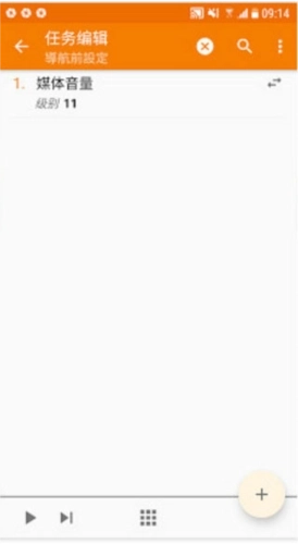 2、回到我前面的例子,我想要触发的动作是开启媒体音量,于是我就在任务页面右下角点击「+」,加入把媒体音量调整到11的动作。