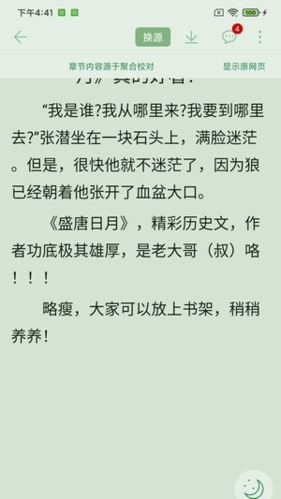 2、可以线上换源,当书籍内容出错时一键切换到新书源,3秒更正书籍内容;