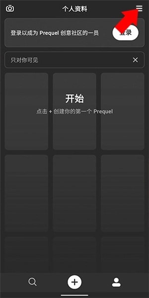 2、来到“我的”界面后,点击右上角的三条杠图标