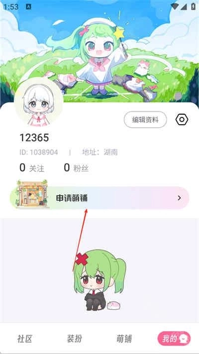2、在“我的”界面中点击申请萌铺