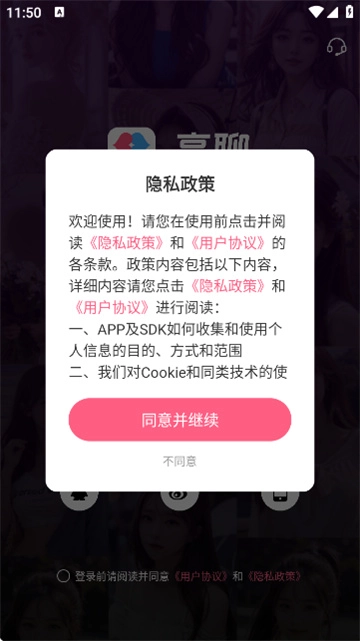 2、首次进入时,点击“同意”隐私政策与用户协议。