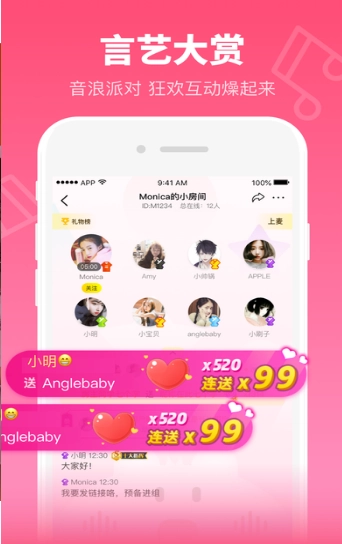 3、【言艺大赏】多人语音房上线啦!无论何时何地,都能开启一场热闹的音浪派对,和大家一起狂欢互动,尽情释放热情!