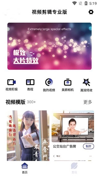 片段编辑、高品质特效、特色滤镜、视频模板制大片,应有尽有