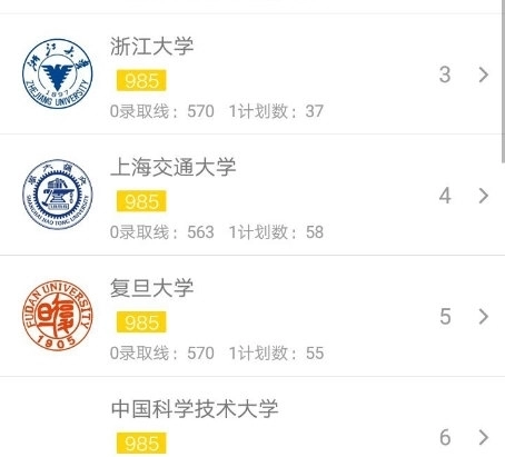 5、打开高校列表页面,对高校按照一定规则进行排序,然后挑选出自己感兴趣的高校,点击查看其详细信息。