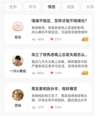 2、知识分子社区交流:这款软件汇聚了情感治疗师、精神科医生等专业人士分享的情感管理实用知识。用户能够进入“知识分子社区”,和这些专家以及其他用户展开交流互动,从而获取更多情绪管理相关的信息。