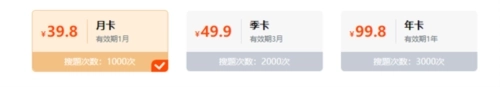 2、会员套餐如下图所示,目前有月卡、季卡和年卡三种套餐
