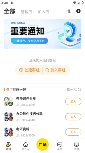 我们能够建立专属的群组分类,针对不同群组分享对应的文件;曲奇云盘相较于其他云盘类软件,具备更为丰富的功能,并且还提供在线聊天的服务。