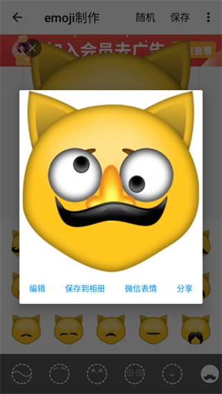 3、图片添加emoji功能:提供海量emoji贴纸资源,支持emoji表情的自由组合,还能自定义背景以及进行贴图操作。