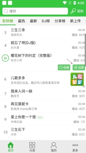 火热铃声实时上新,紧跟时尚潮流,精选分享量爆棚的铃声,汇聚个性又热门的彩铃(炫铃)……
