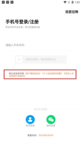 3、选择后进入登录界面,输入手机号注册登录,记得勾选下方的用户协议;