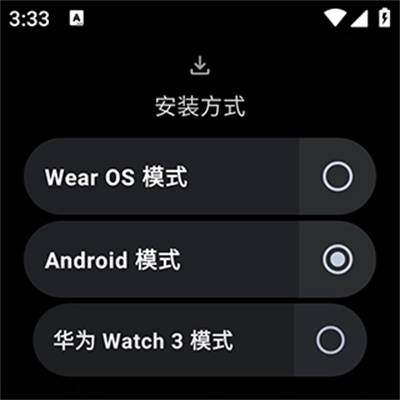 2、当手表型号为华为Watch3时,系统将自动开启华为Watch3专属安装模式